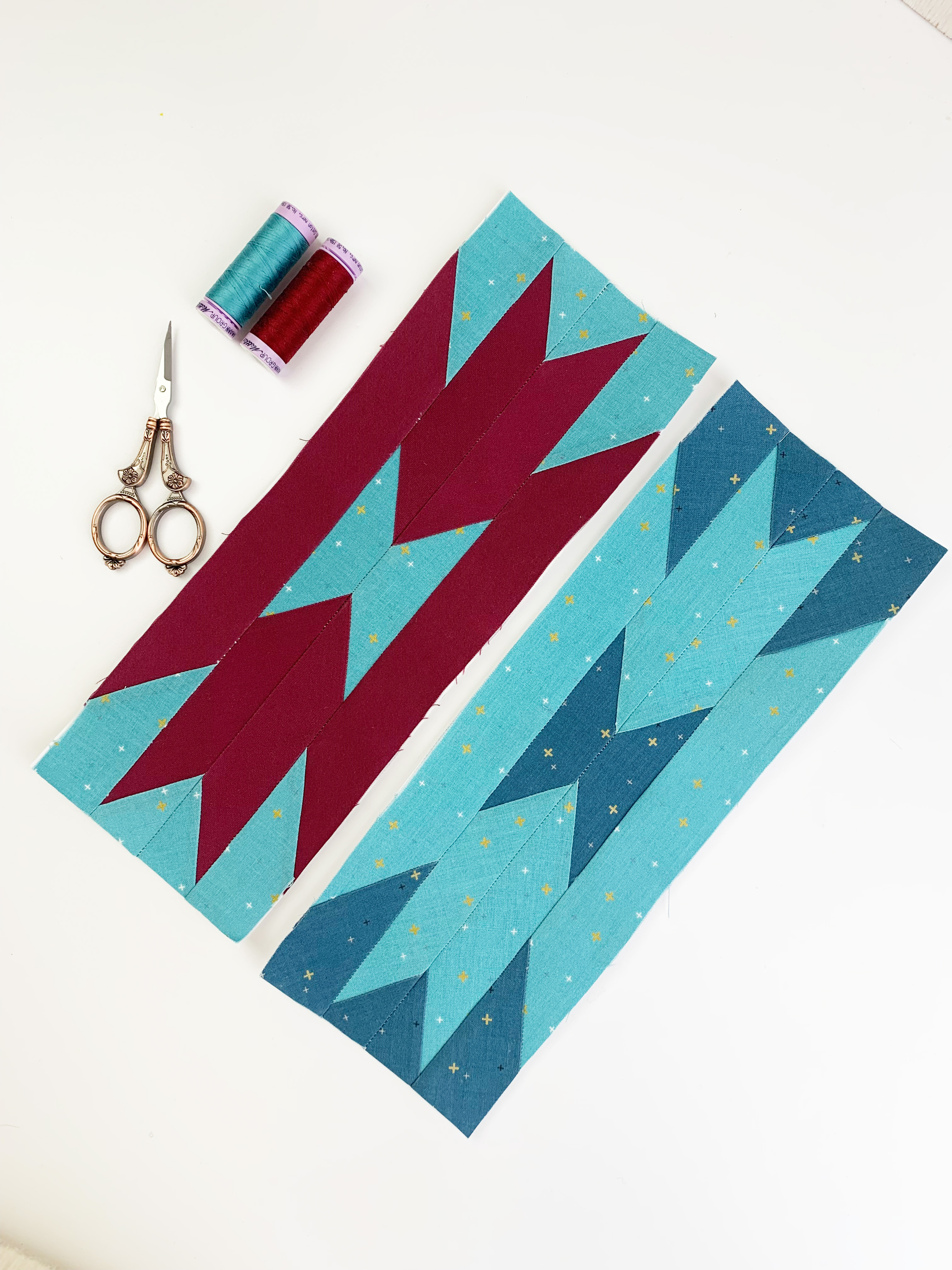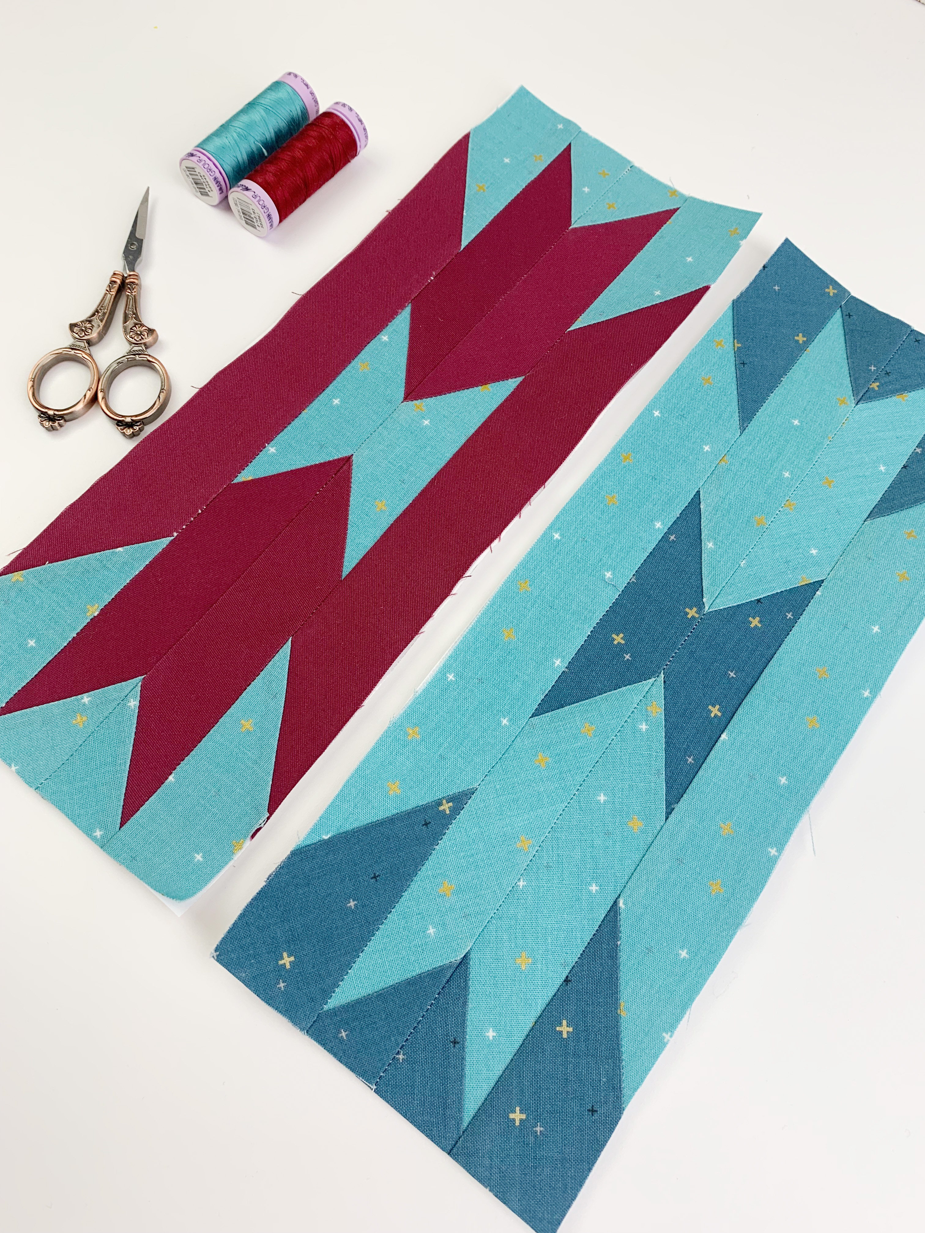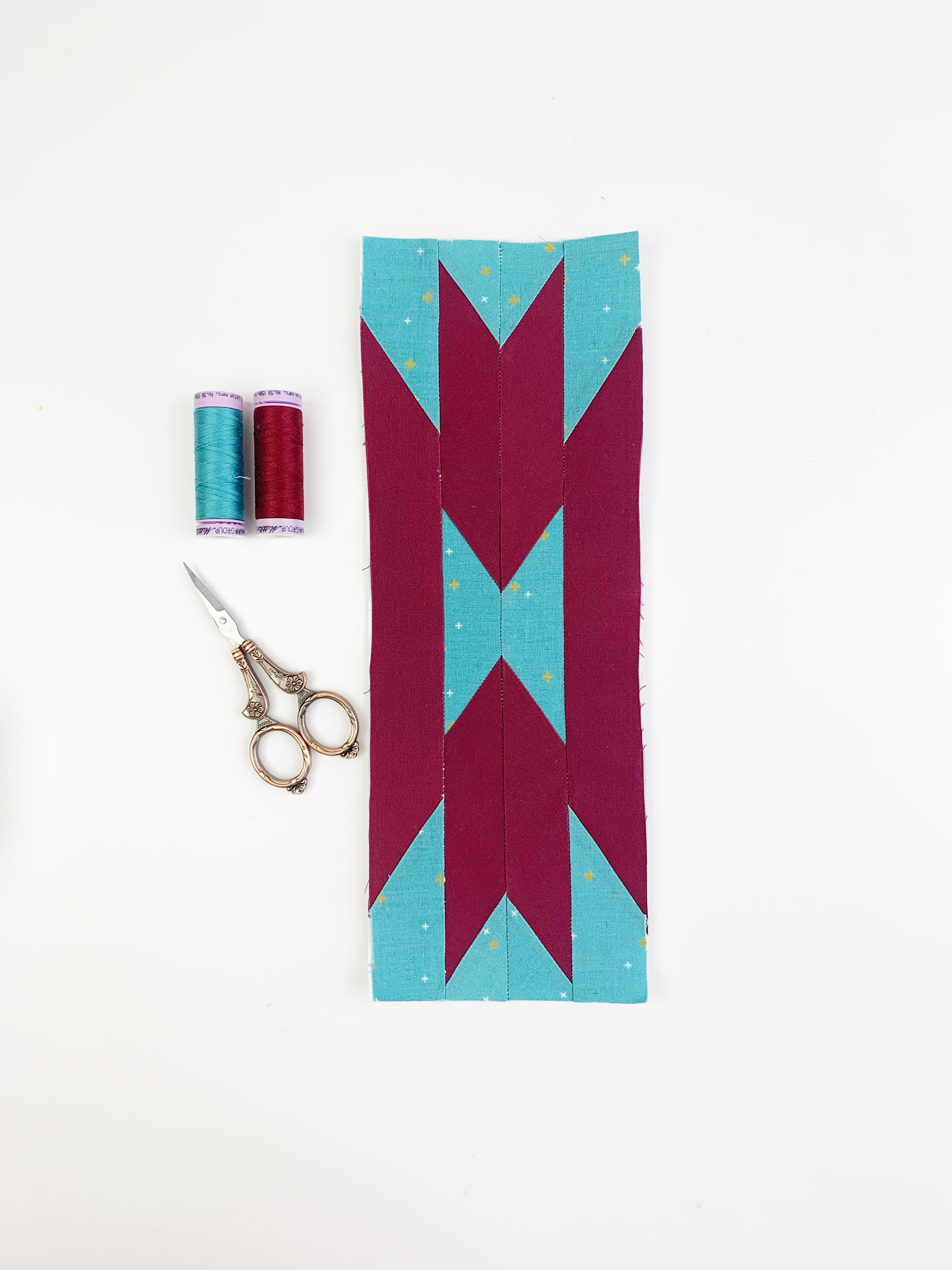 For this quilt, you’ll need 20 Aztec border blocks, each measuring 12″ x 4″.