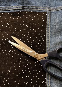 Home » Upcycle a Denim Jacket with Patchwork & Lace Embellishments » Cut-Fabric-for-Back-of-Jean-Jacket