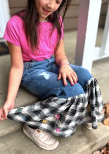 Home » Upcycled Embroidered Ruffle Jeans » Boho-Jeans-Modeled-SItting