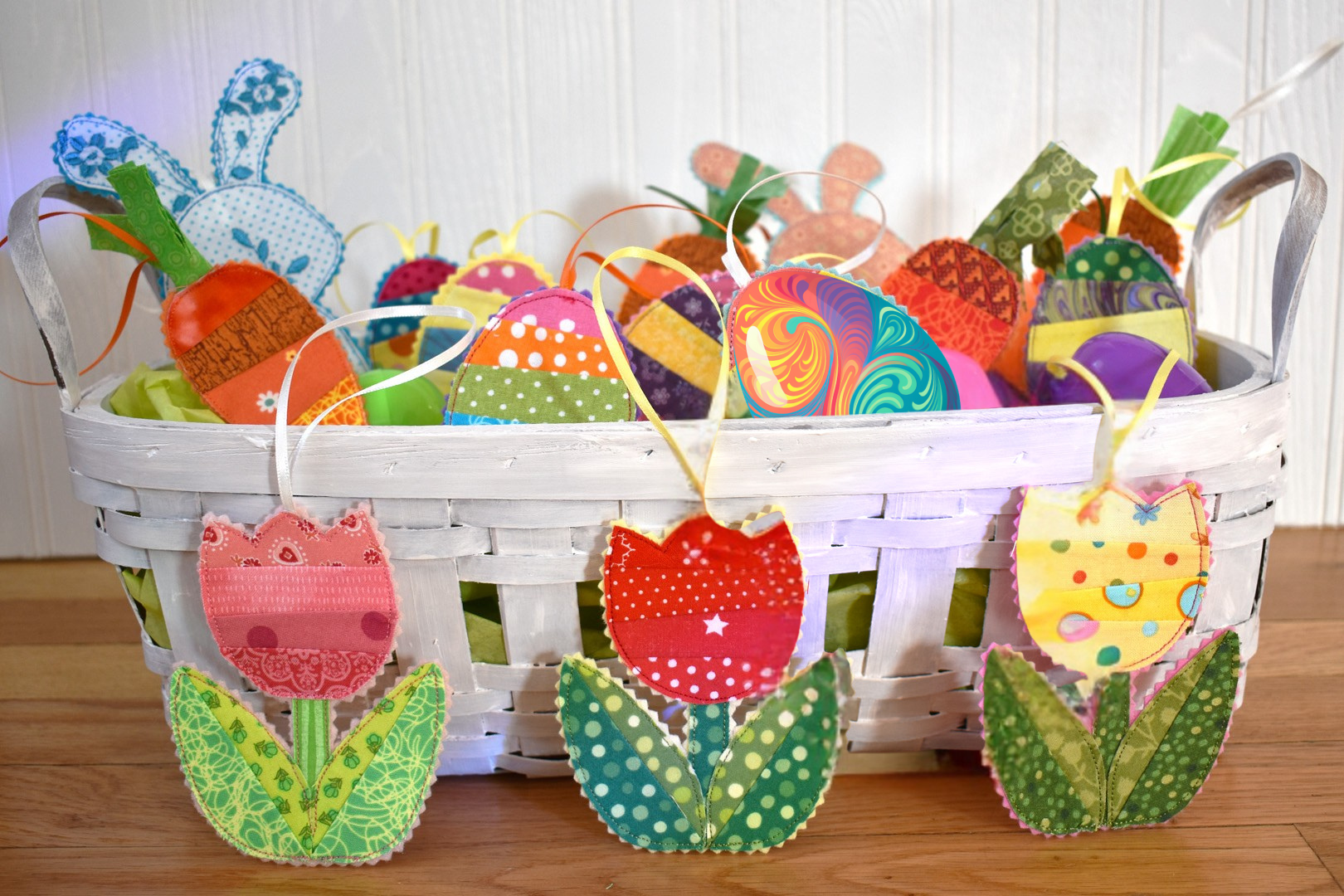 All you need to make these simple Easter ornaments is the free downloadable template, some fabric scraps and a few supplies!