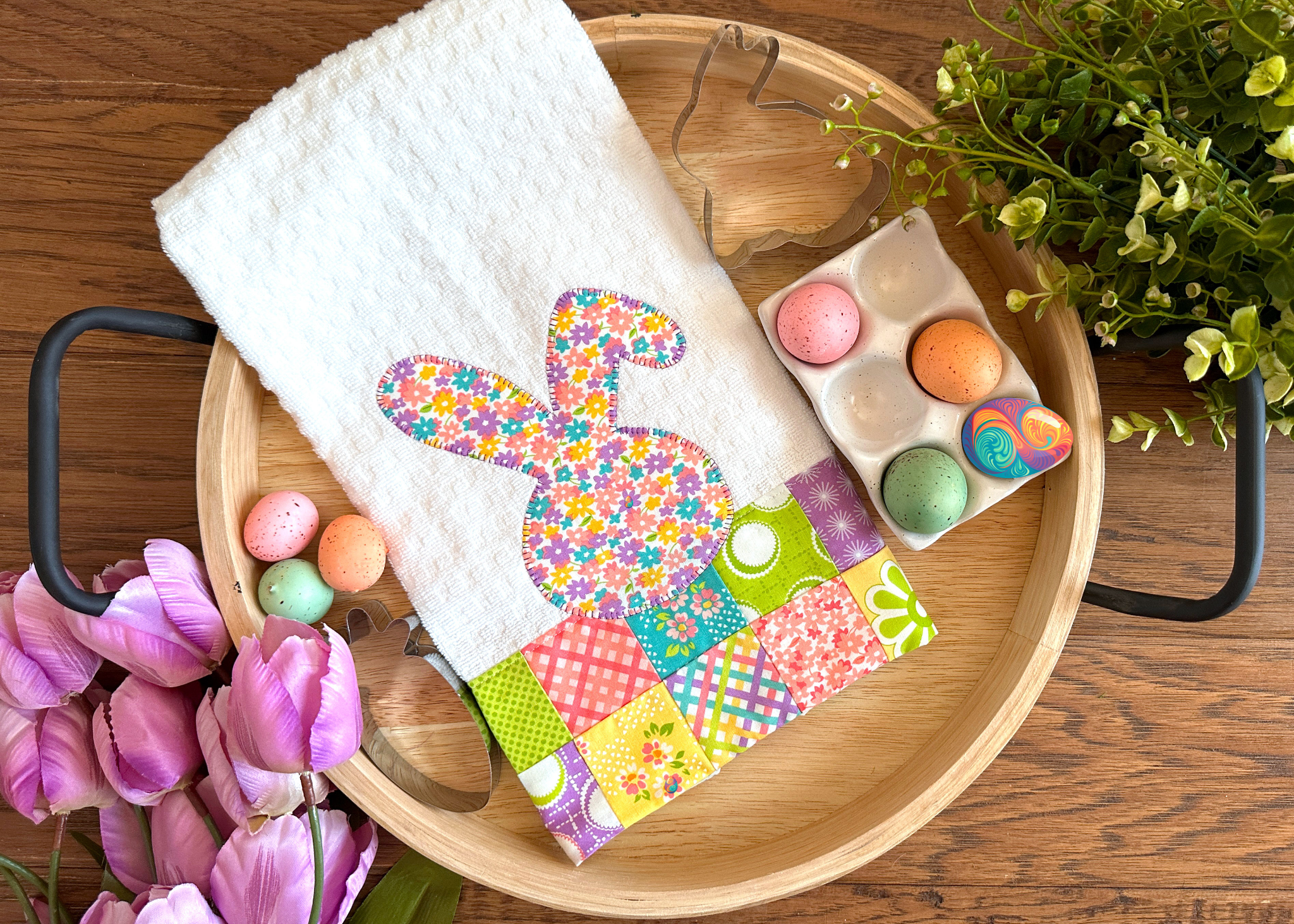 Patchwork Kitchen Towel with Bunny Appliqué