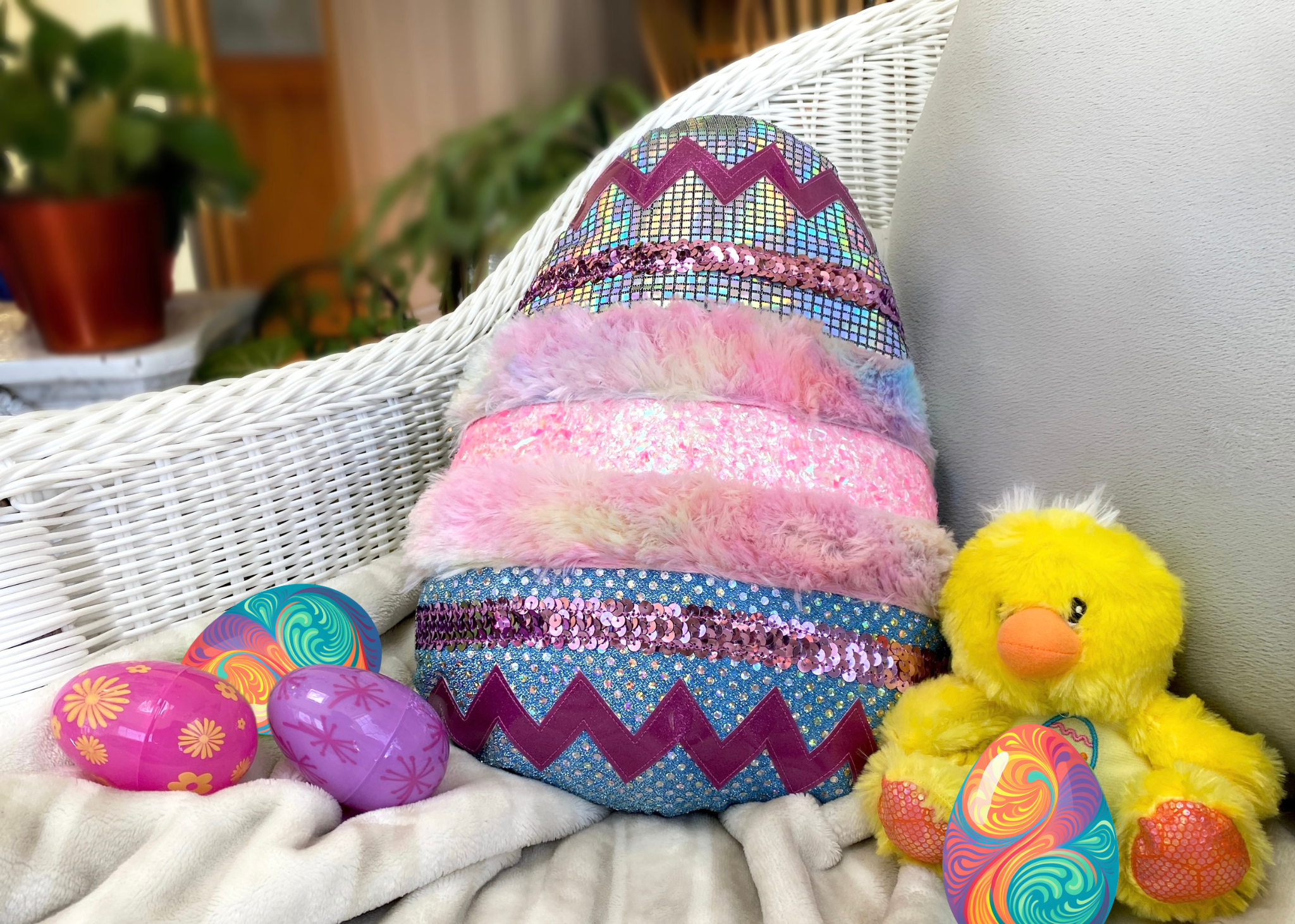 Do you have fabric remnants laying around? Hop into the Easter spirit with a burst of color and creativity by creating an egg-shaped throw pillow!